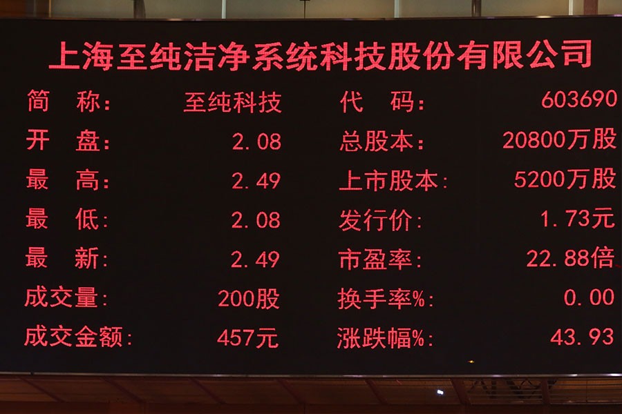 2017年1月13日,聯新資本投資企業——上海至純潔凈系統科技股份有限公司(股票代碼:603690,以下簡稱“至純科技”)登陸上海證券交易所,正式掛牌交易。這是繼常熟車飾1月5日IPO以來,新年里又一家所投企業成功上市。而聯新資本投資的福建海峽環保集團股份有限公司申請IPO亦獲得通過,可謂開門紅。