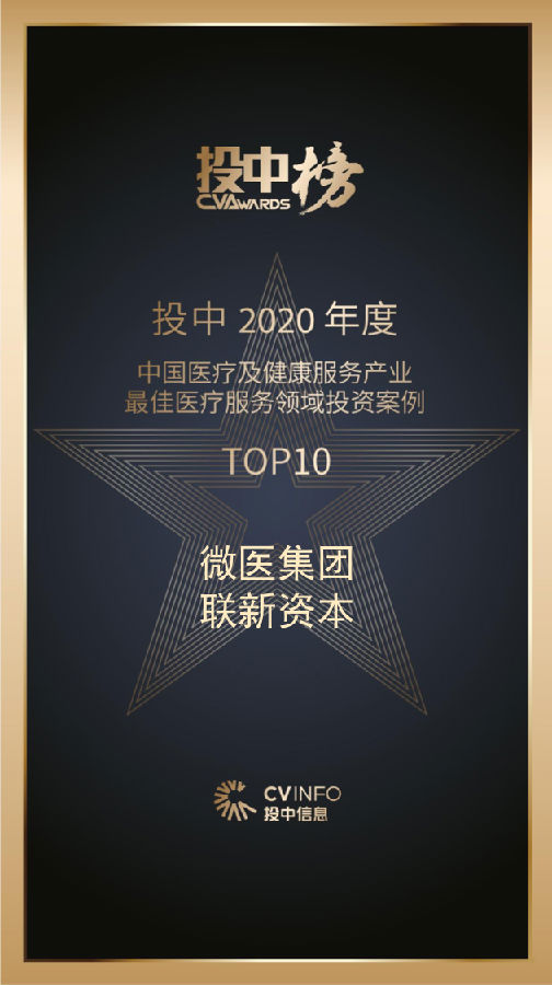 “投中2020年度中國醫(yī)療及健康服務(wù)產(chǎn)業(yè)最佳醫(yī)療服務(wù)領(lǐng)域投資案例TOP10”